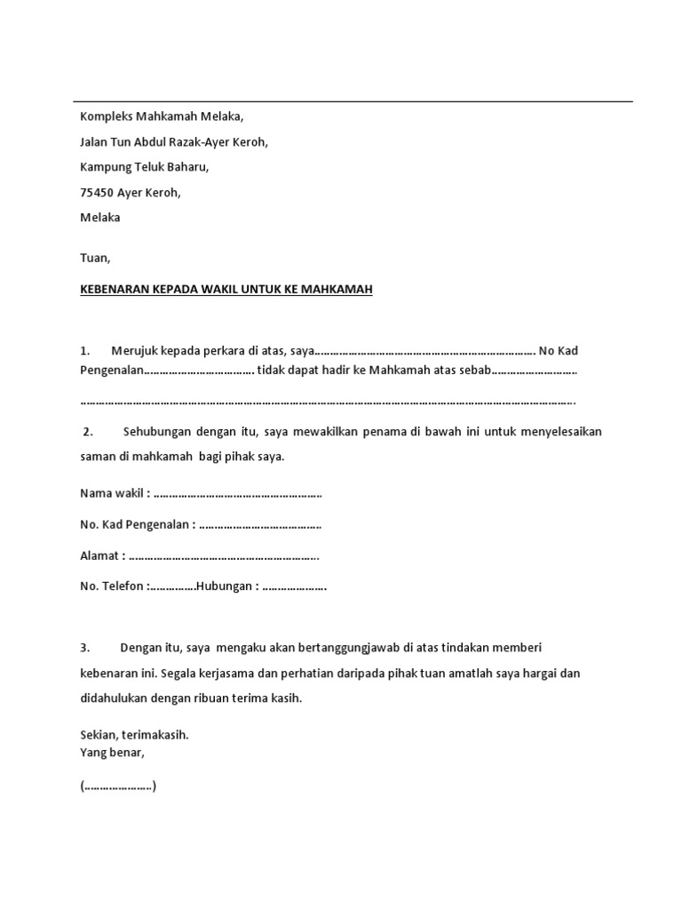 . Contoh surat kebenaran kepada wakil rozanita binti abdul nyzam no 20 jalan chengal 4 taman chengal 28000. Contoh Surat Wakil Jpj 34wm1r2vd8l7. Wali kuasa akan menjadi wakil.